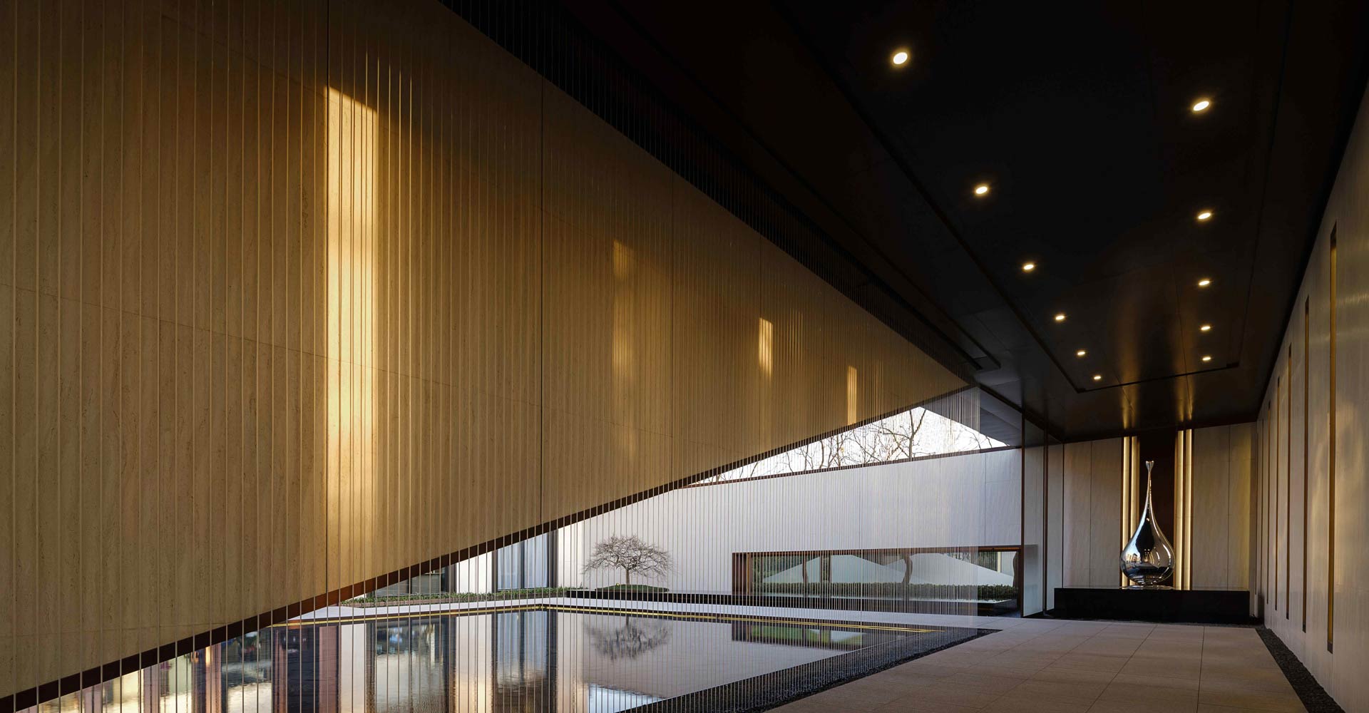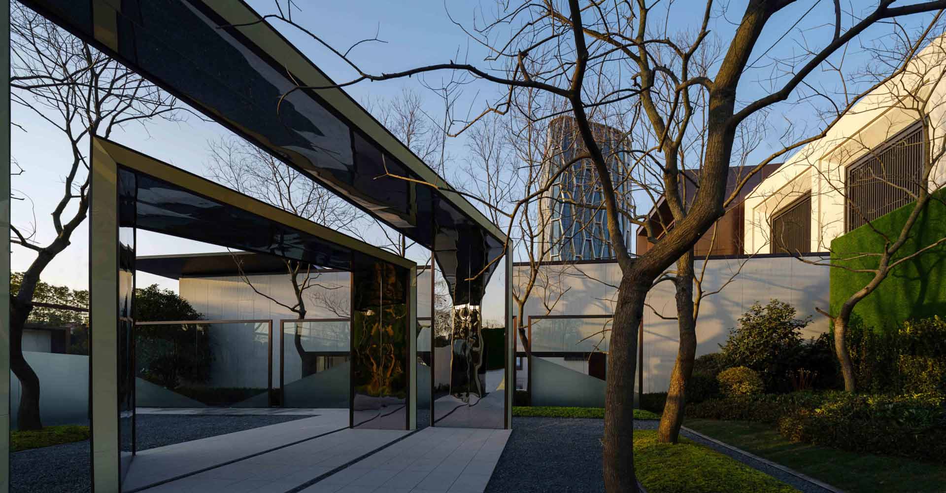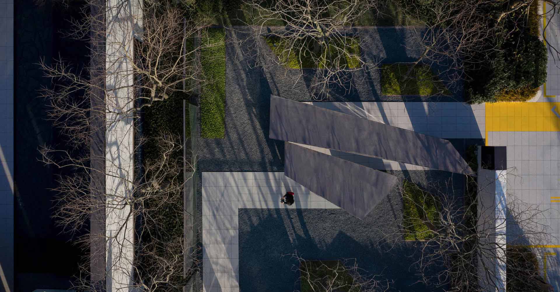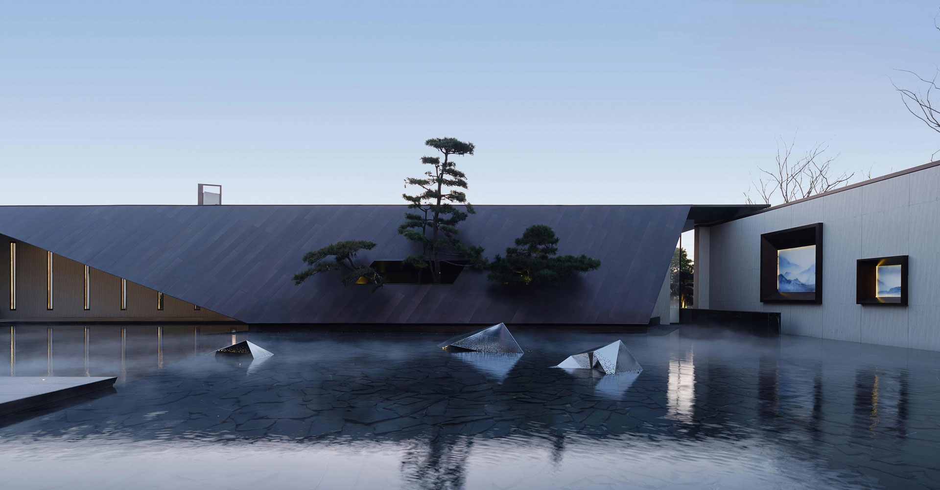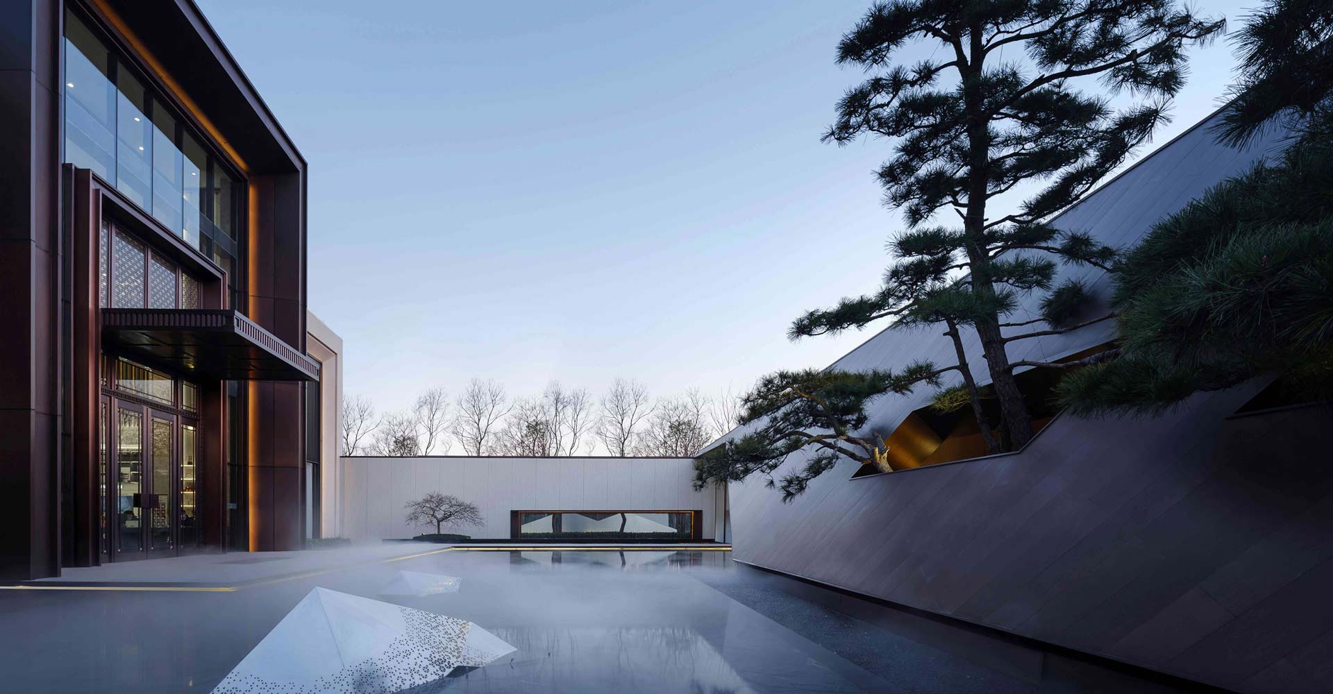 本案位于上海宝山,作为曾经的十里洋场,当下的国际大都市,有太多的标签和符号,很难用一个语言来描述,海纳百川的城市气度让设计可以充分发挥。初识场地位于沪太公路与老罗北路丁字路口,城市主干道沪太公路交通流量大,繁忙嘈杂,机非分车带绿化视线遮挡严重,基地北侧未来产业园城市风貌凌乱。售楼处前场100米X45米,空间相对完整紧凑,人车混行的环境形成设计挑战。
