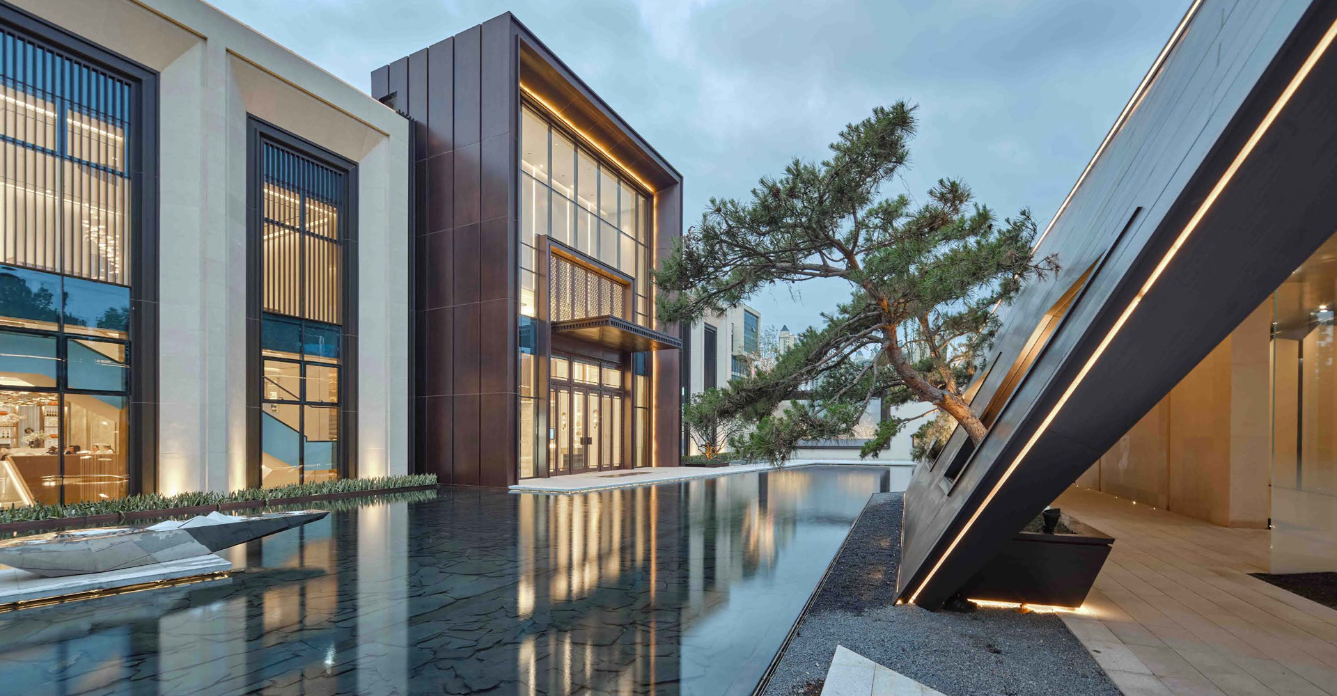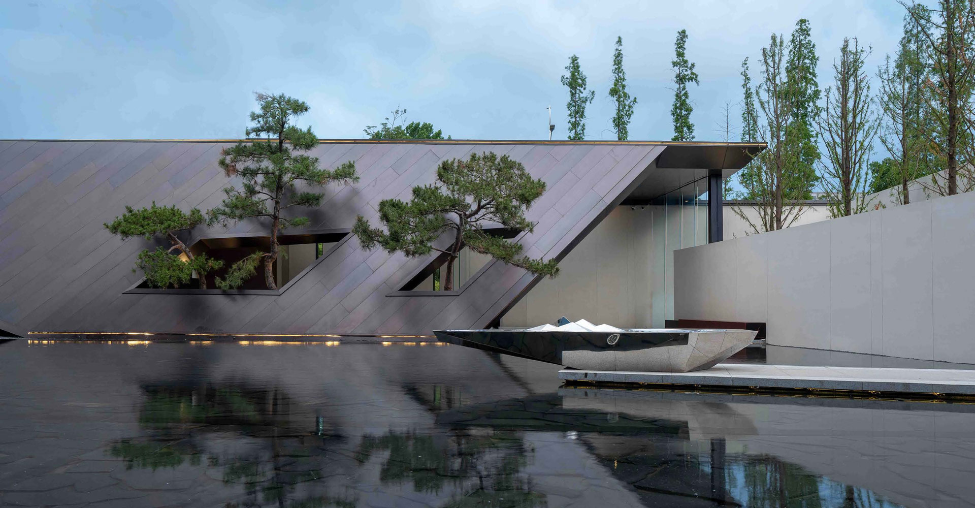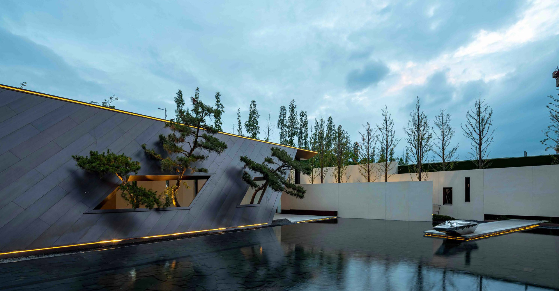 该项目我们想做的是一种不流于表面形式的景观设计,在这里可以闻水四季之声,体水动静之乐,观水四时之景, 悟言一景之中,隔绝喧嚣嘈杂。发心于景而成于境,引起参与者精神层面的共鸣,形成春风百里、和悦天地的景观氛围。