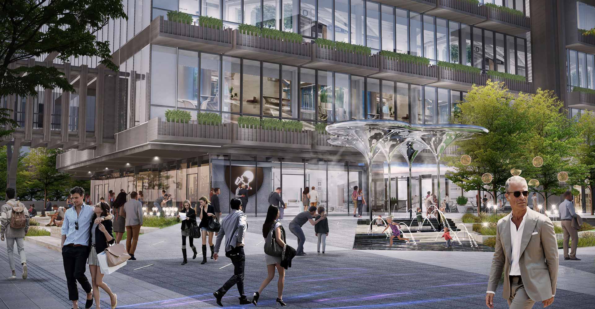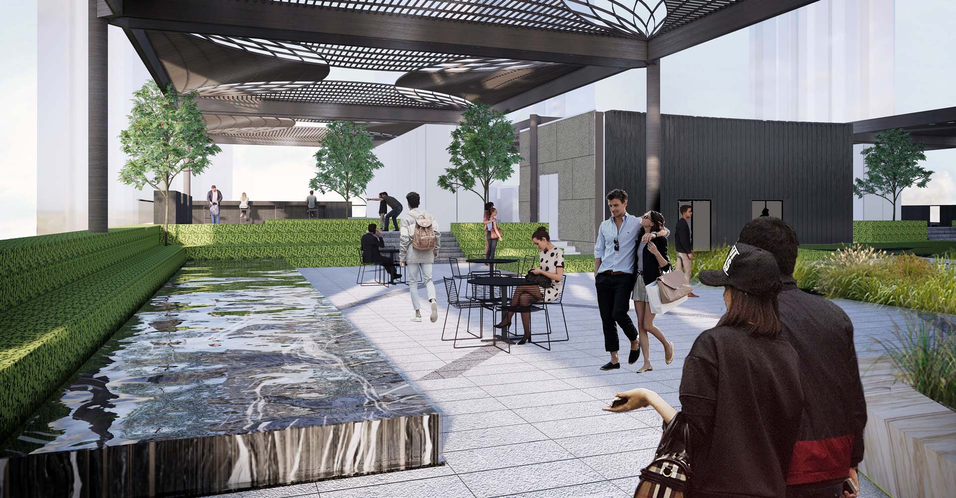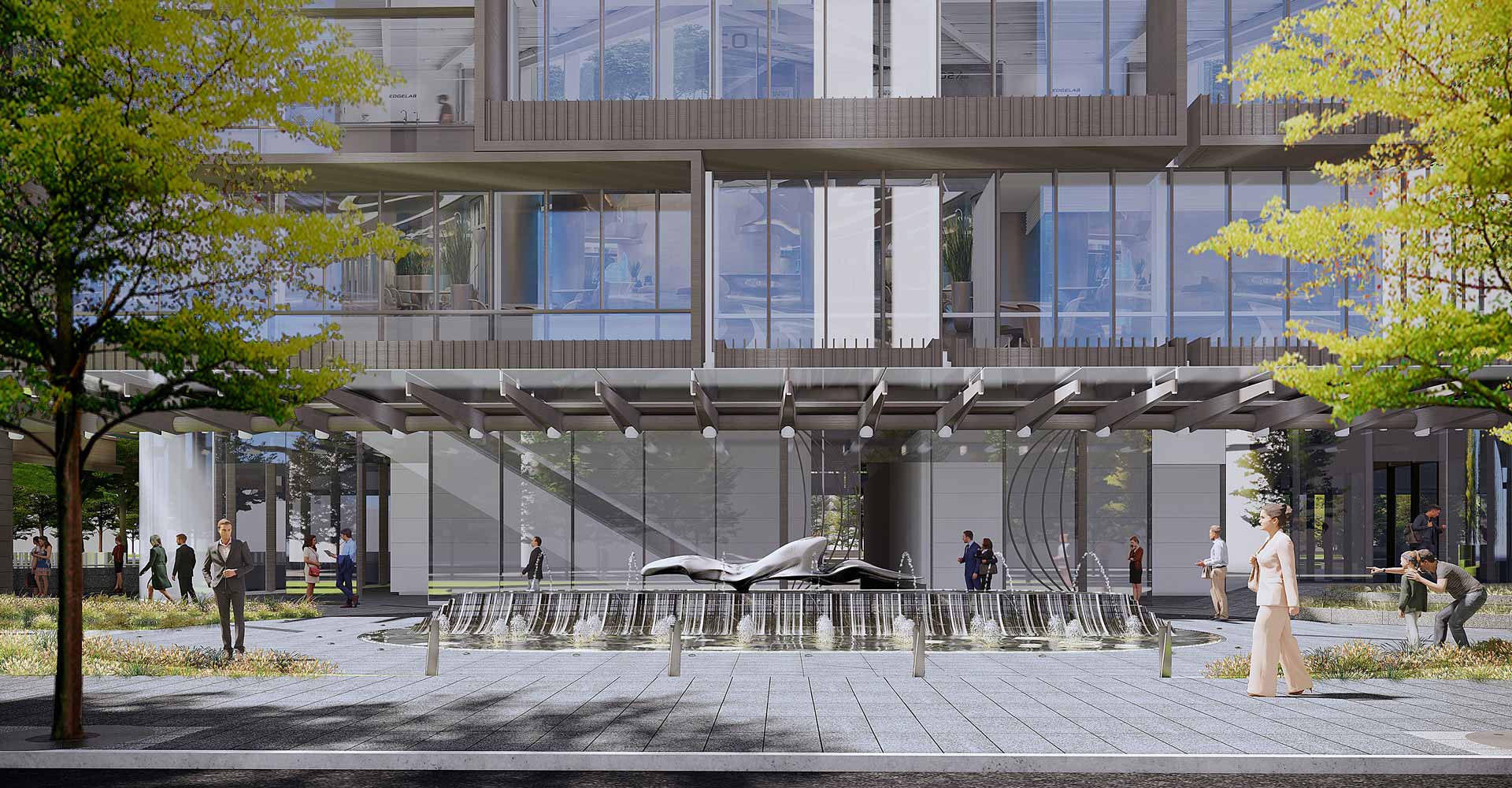 本项目位于深圳前湾片区绝佳地段,西侧面向大铲湾一线海景,北侧看远山风景,南侧未来紧邻城市公园,东侧观城市景观,四个方向景观资源各有特色。景观设计延续建筑提出的WINDOWS 概念,以“都市之窗,无界风景”为核心主题,营造一个步行友好、绿色弹性的未来商业办公之窗,一个更多座位和家庭儿童活动空间的社区生活之窗,一个街头生活、艺术文化之窗,世界一流公共空间之窗。