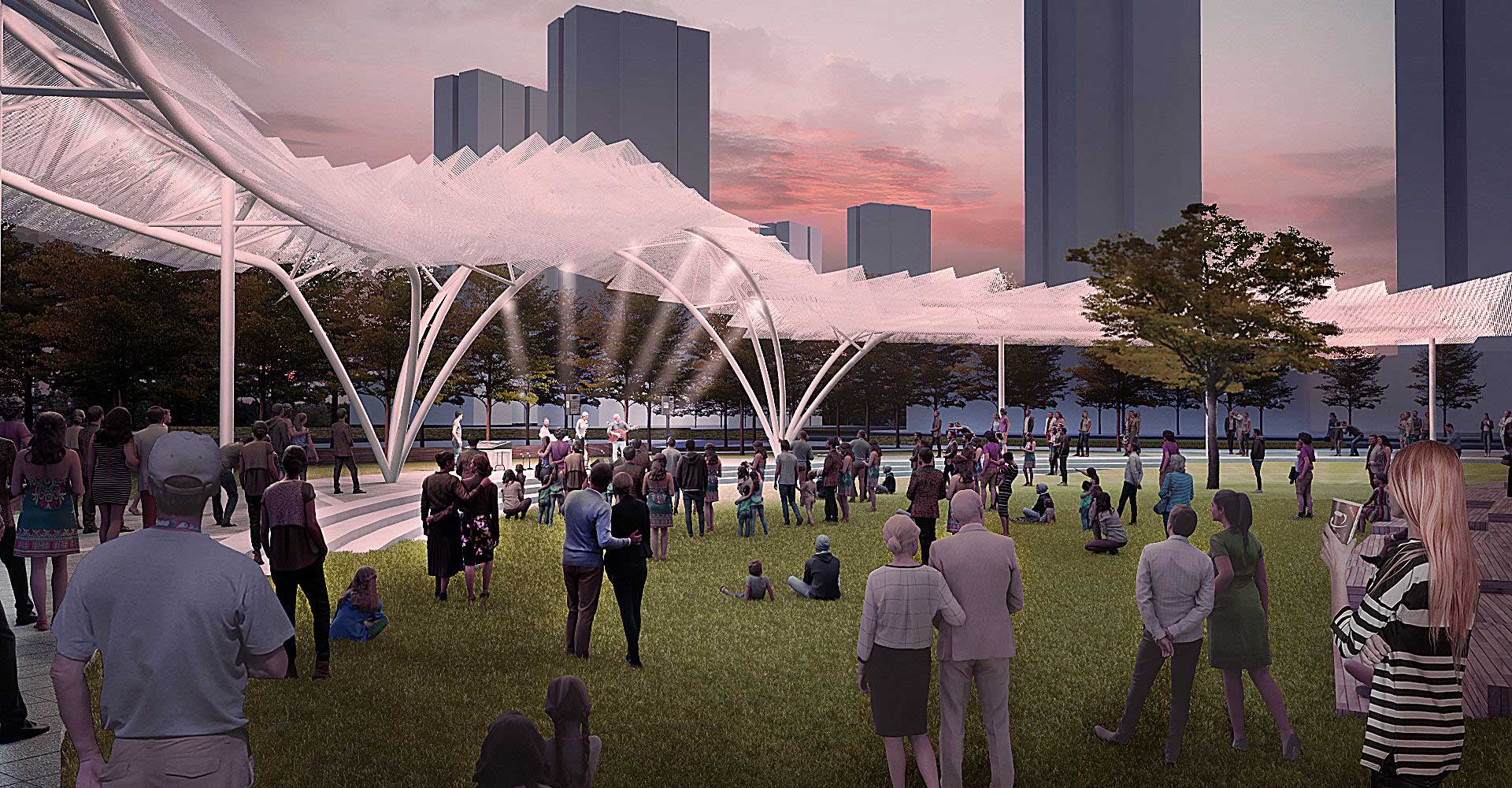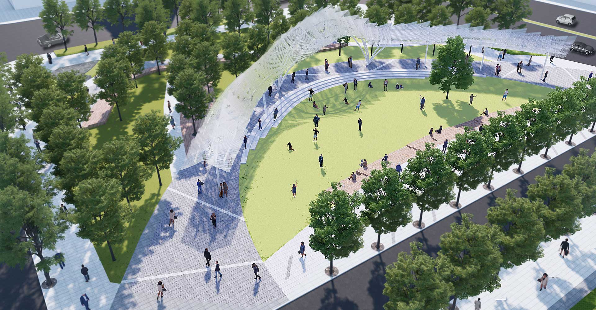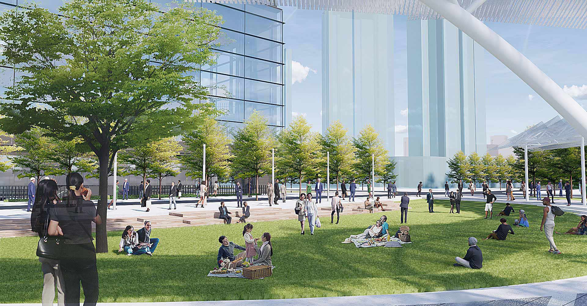 本项目位于深圳前湾片区绝佳地段,西侧面向大铲湾一线海景,北侧看远山风景,南侧未来紧邻城市公园,东侧观城市景观,四个方向景观资源各有特色。景观设计延续建筑提出的WINDOWS 概念,以“都市之窗,无界风景”为核心主题,营造一个步行友好、绿色弹性的未来商业办公之窗,一个更多座位和家庭儿童活动空间的社区生活之窗,一个街头生活、艺术文化之窗,世界一流公共空间之窗。